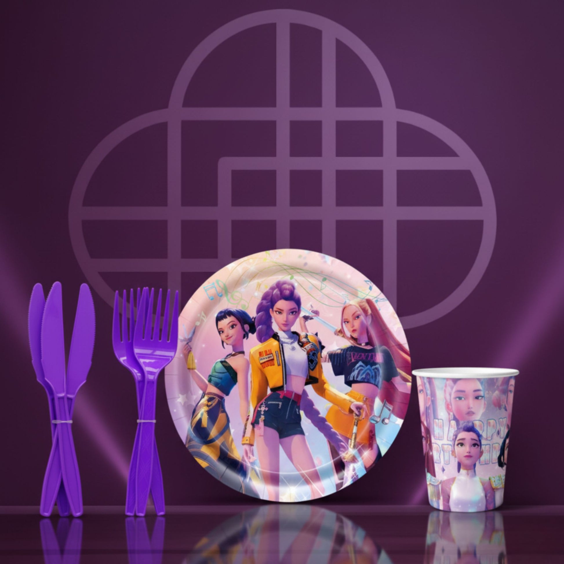Fini les fêtes sans style ! Transforme ton salon en scène K-pop avec notre pack anniversaire complet : nappes, ballons, guirlande, vaisselle, déco murale, et bien plus encore… Tout l’univers de la série Netflix K-POP DEMON HUNTER pour une fête qui va faire vibrer les invités !